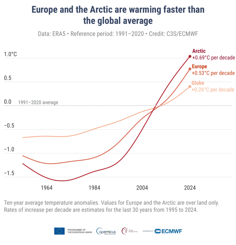 Europa i Arktik zagrijavaju se brže od ostatka svijeta. Ovaj trend nije samo statistički podatak, on već oblikuje vremenske obrasce i utječe na ekosustave. Razumijevanje tih procesa ključno je za donošenje politika prilagodbe i ublažavanja klimatskih promjena.