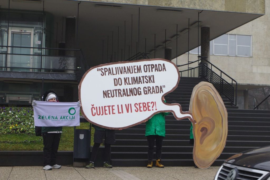 Zelena akcija pred Gradskim je poglavarstvom održala prosvjedni performans kojim su podsjetili na akciju od prije skoro 20 godina. Cilj je još uvijek isti: borba protiv spaljivanja otpada. Meta se, međutim, promijenila: umjesto protiv samovolje Milana Bandića, sada se bore protiv svog nekadašnjeg predsjednika Tomaševića.