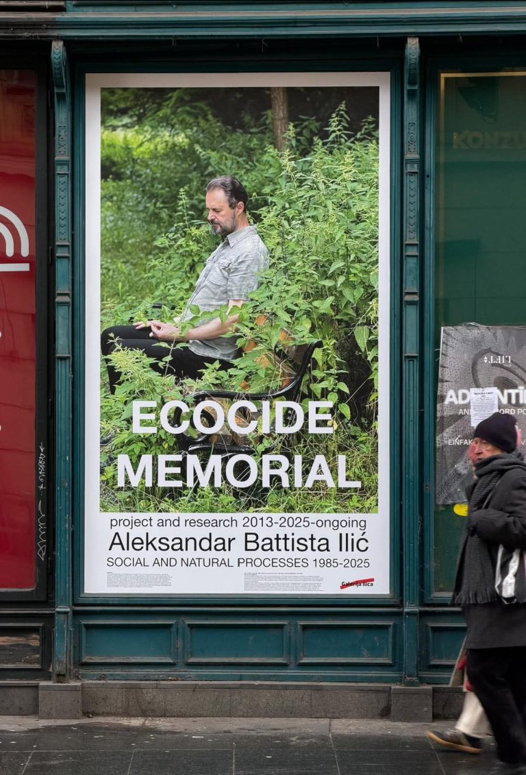 Dio je to poruka koje se mogu pročitati na izlozima praznih objekata duž zagrebačke Ilice, u sklopu izložbe Ekocid Memorijal umjetnika Aleksandra Battiste Ilića. Izložba, koja se može pogledati na potezu od Frankopanske do Britanskog trga, rezultat je višegodišnjeg umjetničkog istraživanja čovjekova odnosa prema prirodi, a središnje pitanje kojim se bavi jest razaranje ekosustava.