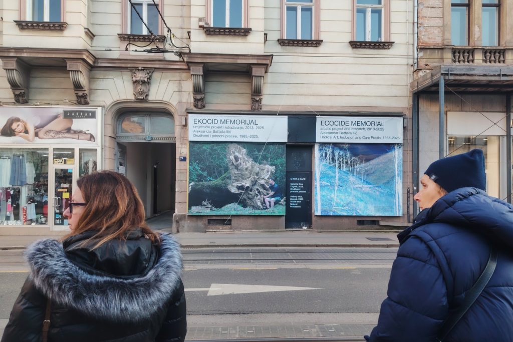 Dio je to poruka koje se mogu pročitati na izlozima praznih objekata duž zagrebačke Ilice, u sklopu izložbe Ekocid Memorijal umjetnika Aleksandra Battiste Ilića. Izložba, koja se može pogledati na potezu od Frankopanske do Britanskog trga, rezultat je višegodišnjeg umjetničkog istraživanja čovjekova odnosa prema prirodi, a središnje pitanje kojim se bavi jest razaranje ekosustava.