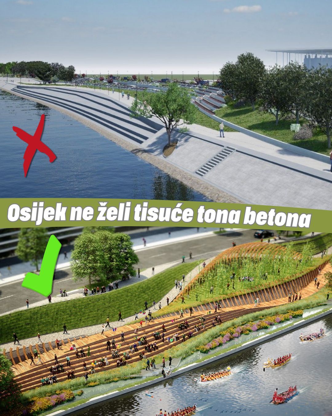 Osječani se bune jer Hrvatske vode žele betonirati obalu Drave
